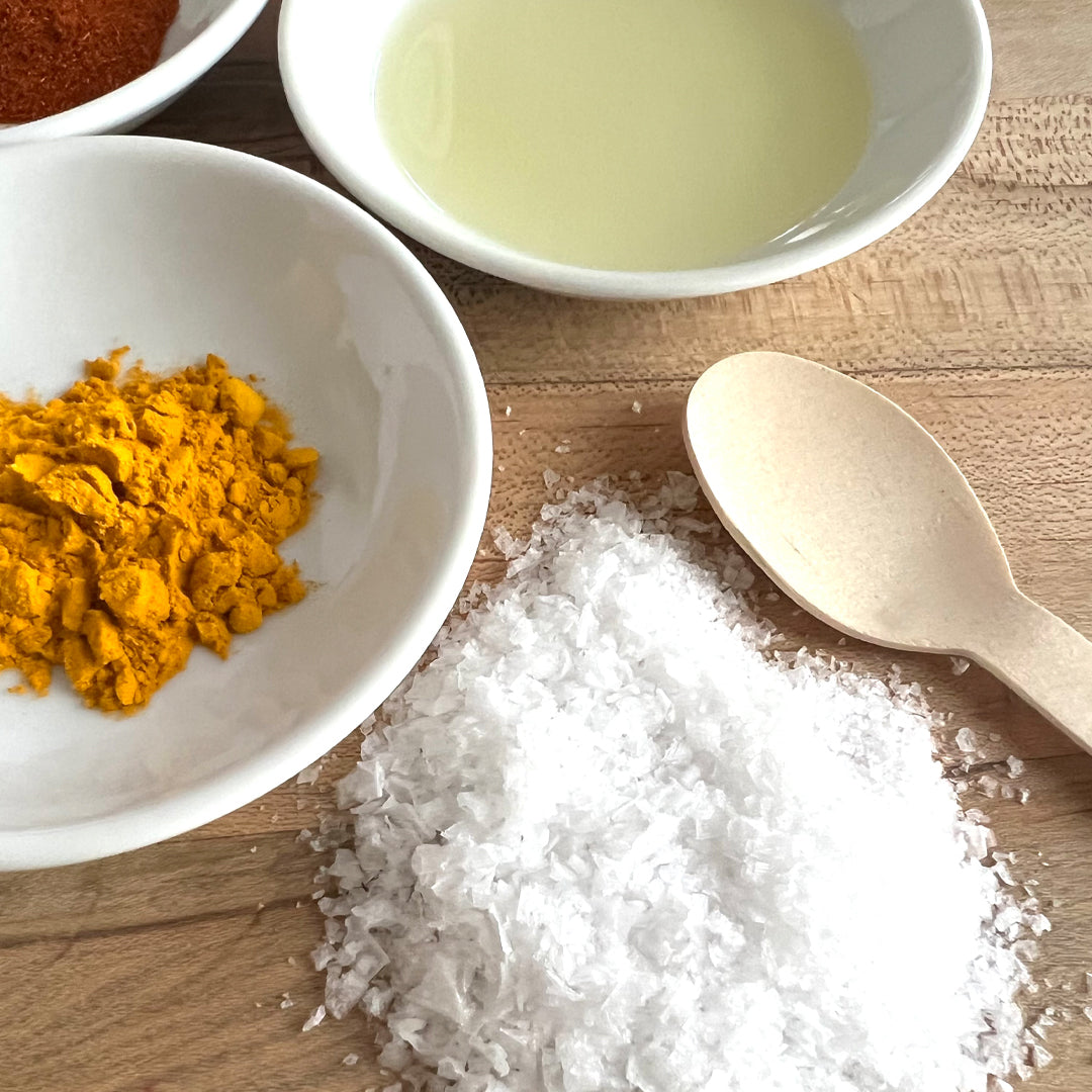 Natural sea salts cleanse and sweep away dry, dull skin, whilst turmeric improves the tone of your skin and Karkoer Pure vitamin E oil helps boost skin's natural cell turnover.